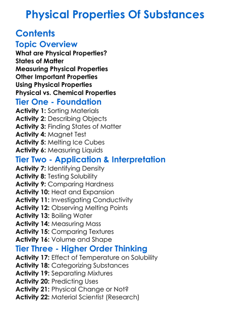 Physical Properties Of Substances Worksheet Activity Booklet