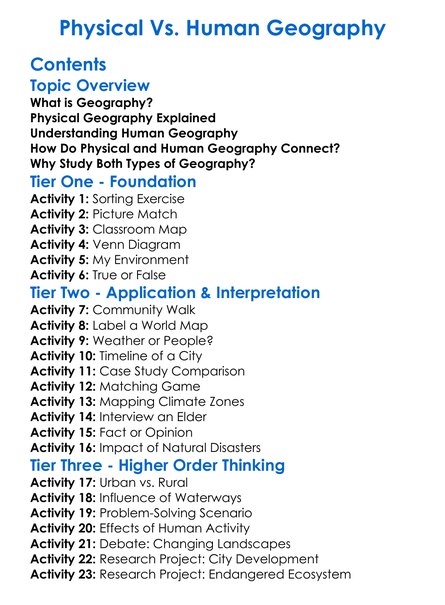 Physical Vs Human Geography Worksheet Activity Booklet