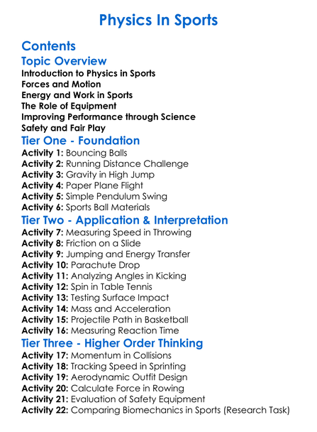 Physics In Sports Worksheet Activity Booklet