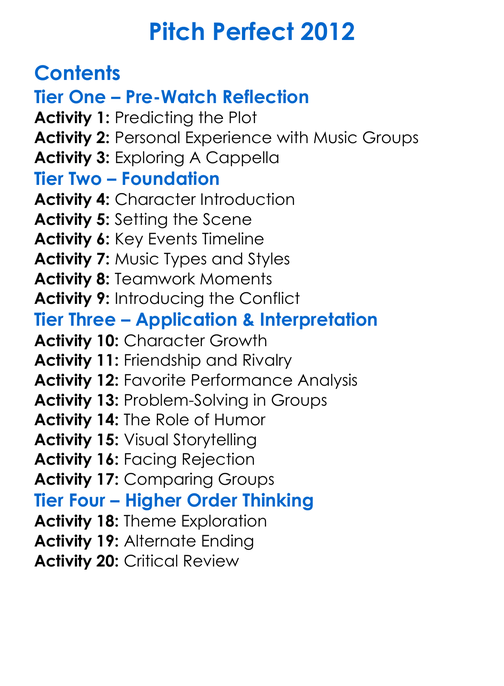 Pitch Perfect 2012 Worksheet Activity Booklet