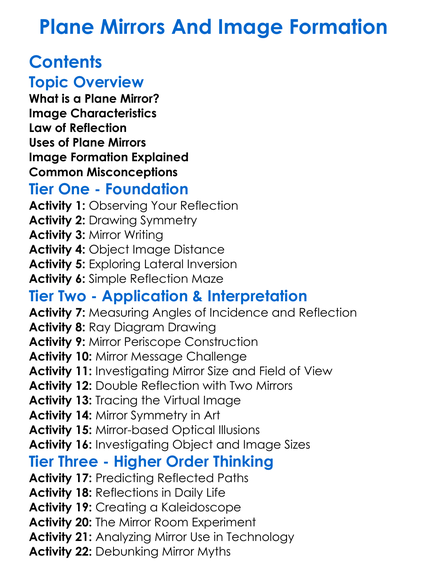 Plane Mirrors And Image Formation Worksheet Activity Booklet