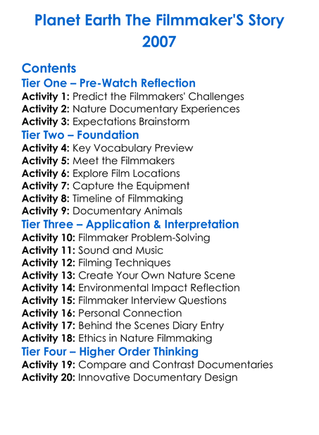 Planet Earth The Filmmakers Story 2007 Worksheet Activity Booklet