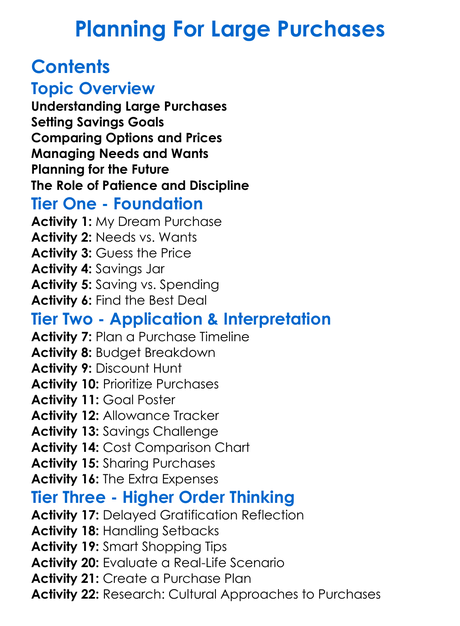 Planning For Large Purchases Worksheet Activity Booklet