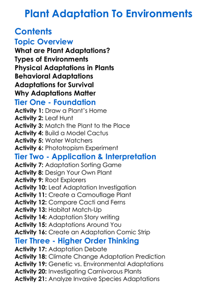 Plant Adaptation To Environments Worksheet Activity Booklet