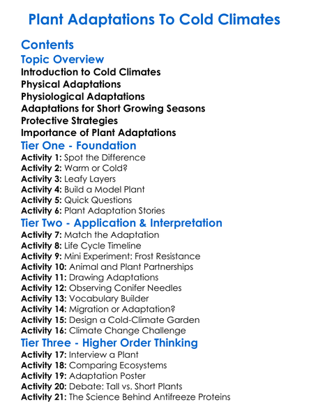 Plant Adaptations To Cold Climates Worksheet Activity Booklet