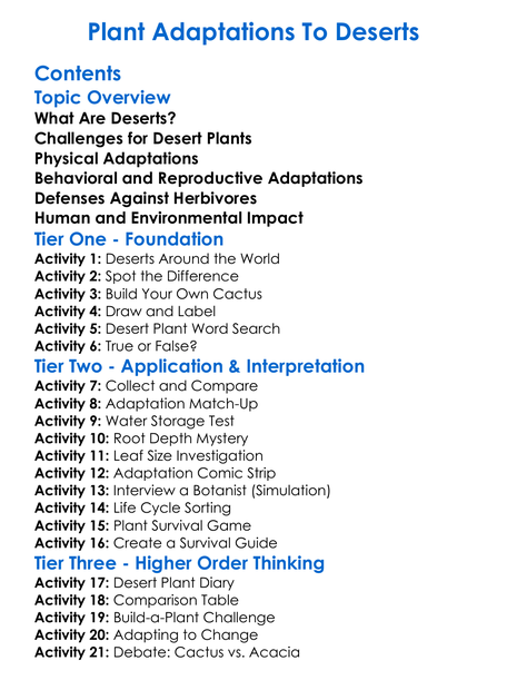 Plant Adaptations To Deserts Worksheet Activity Booklet