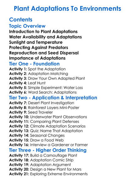 Plant Adaptations To Environments Worksheet Activity Booklet