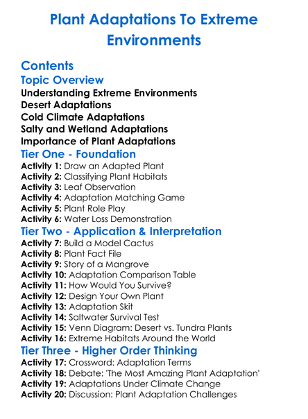 Plant Adaptations To Extreme Environments Worksheet Activity Booklet