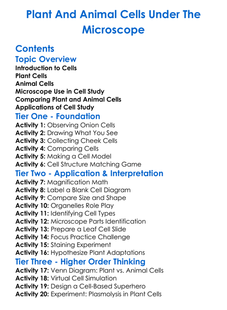Plant And Animal Cells Under The Microscope Worksheet Activity Booklet
