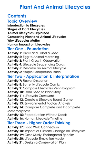 Plant And Animal Lifecycles Worksheet Activity Booklet