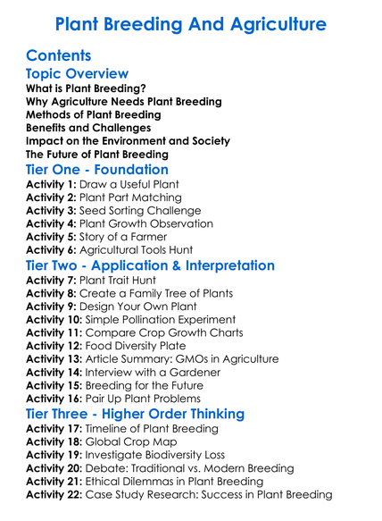 Plant Breeding And Agriculture Worksheet Activity Booklet