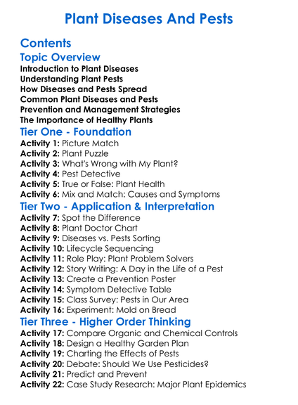 Plant Diseases And Pests Worksheet Activity Booklet