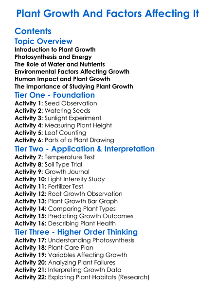 Plant Growth And Factors Affecting It Worksheet Activity Booklet