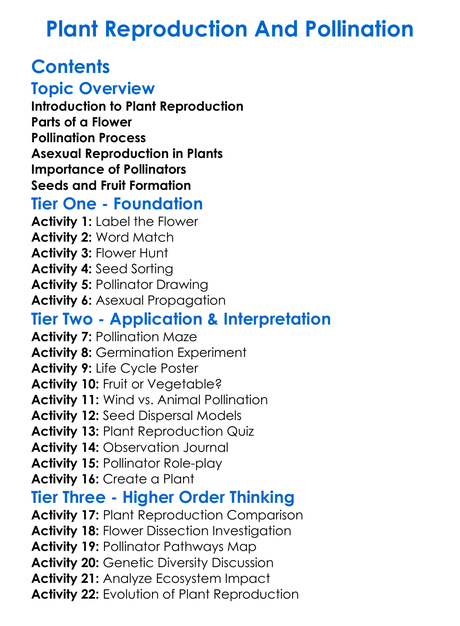 Plant Reproduction And Pollination Worksheet Activity Booklet