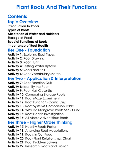 Plant Roots And Their Functions Worksheet Activity Booklet