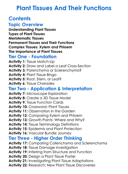 Plant Tissues And Their Functions Worksheet Activity Booklet
