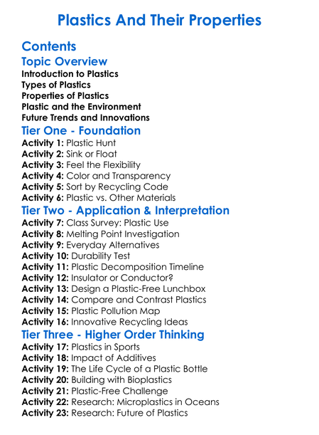 Plastics And Their Properties Worksheet Activity Booklet