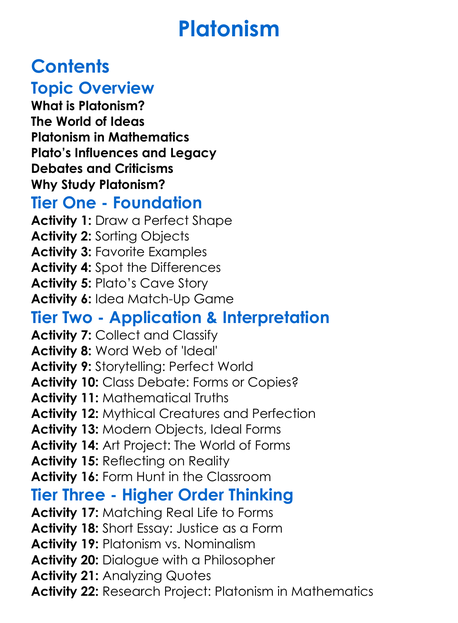Platonism Worksheet Activity Booklet
