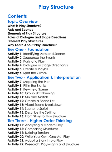 Play Structure Worksheet Activity Booklet