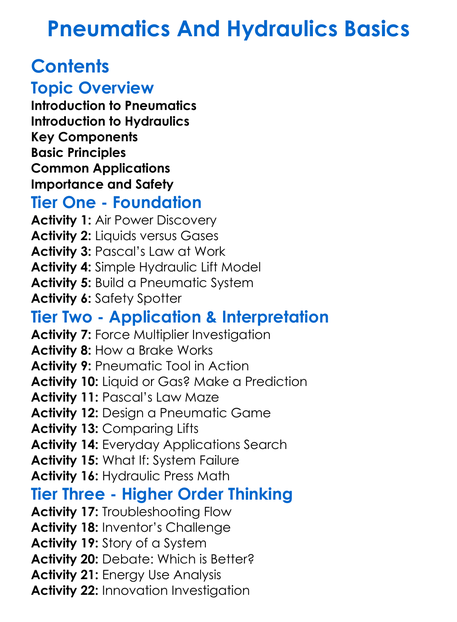 Pneumatics And Hydraulics Basics Worksheet Activity Booklet