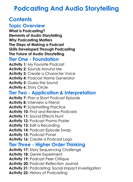 Podcasting And Audio Storytelling Worksheet Activity Booklet