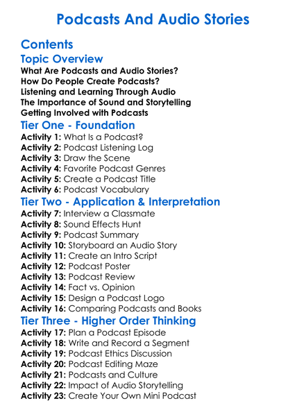 Podcasts And Audio Stories Worksheet Activity Booklet