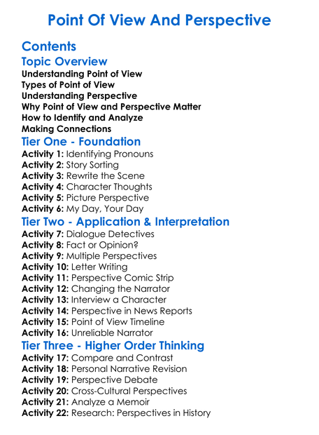 Point Of View And Perspective Worksheet Activity Booklet