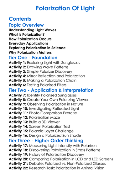Polarization Of Light Worksheet Activity Booklet
