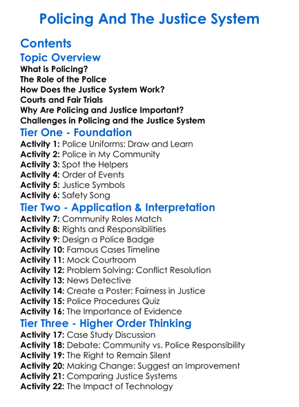 Policing And The Justice System Worksheet Activity Booklet