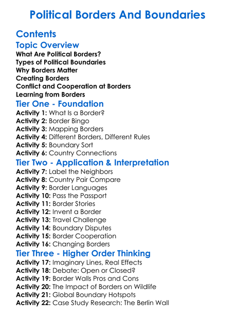 Political Borders And Boundaries Worksheet Activity Booklet
