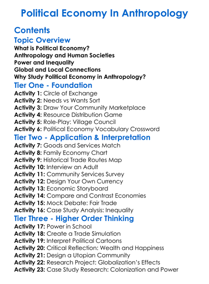 Political Economy In Anthropology Worksheet Activity Booklet