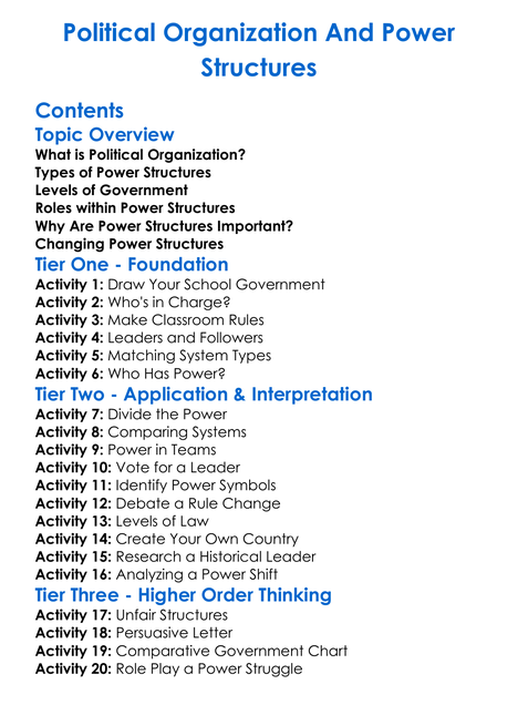 Political Organization And Power Structures Worksheet Activity Booklet