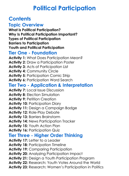 Political Participation Worksheet Activity Booklet