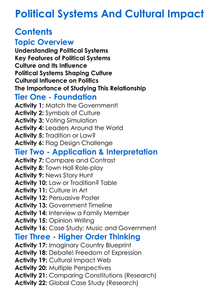Political Systems And Cultural Impact Worksheet Activity Booklet