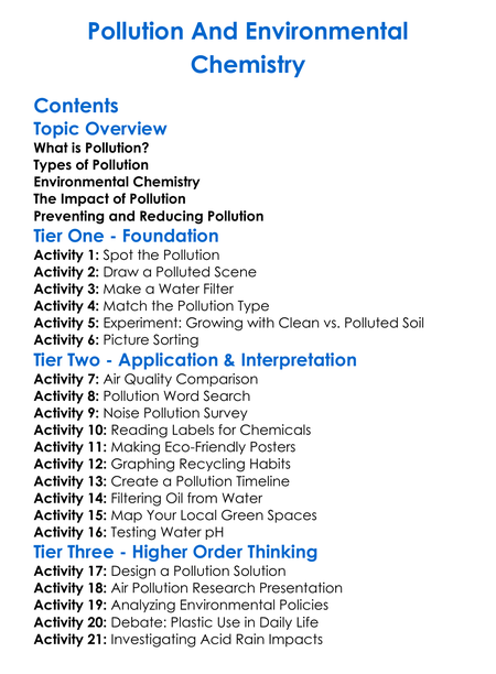 Pollution And Environmental Chemistry Worksheet Activity Booklet
