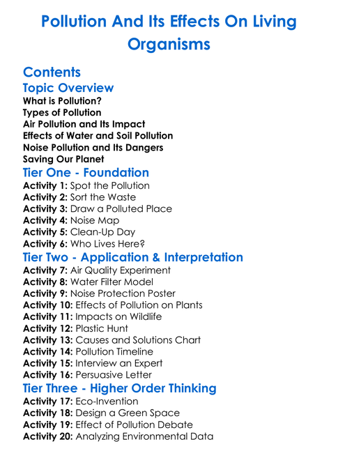 Pollution And Its Effects On Living Organisms Worksheet Activity Booklet