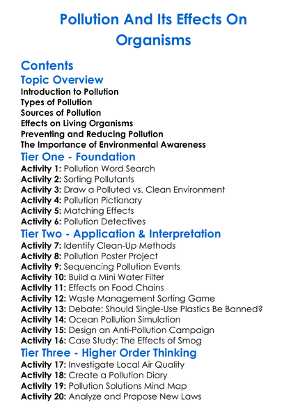 Pollution And Its Effects On Organisms Worksheet Activity Booklet