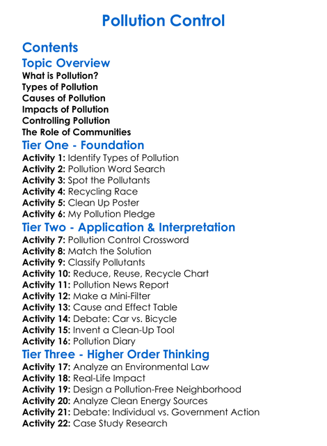 Pollution Control Worksheet Activity Booklet
