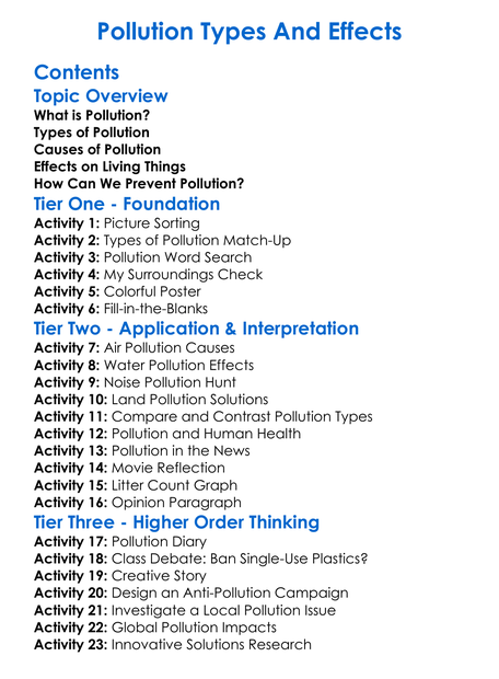 Pollution Types And Effects Worksheet Activity Booklet