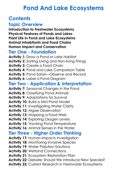 Pond And Lake Ecosystems Worksheet Activity Booklet