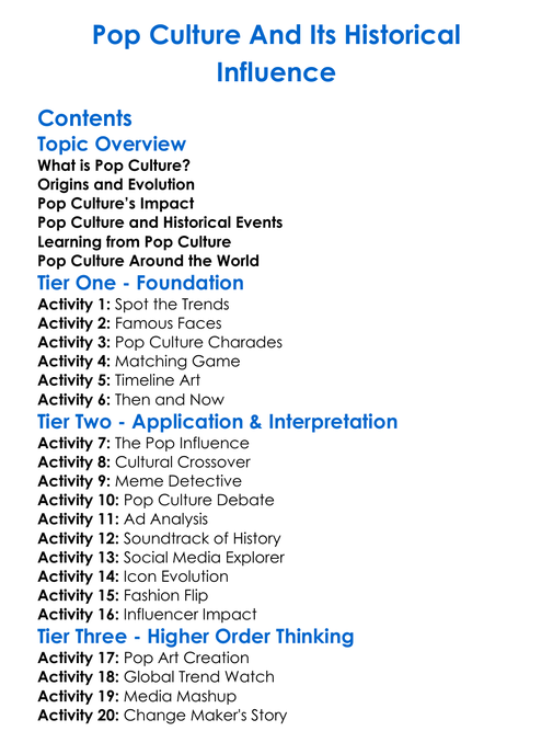 Pop Culture And Its Historical Influence Worksheet Activity Booklet