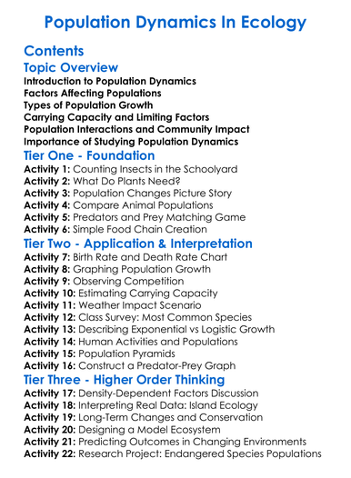 Population Dynamics In Ecology Worksheet Activity Booklet