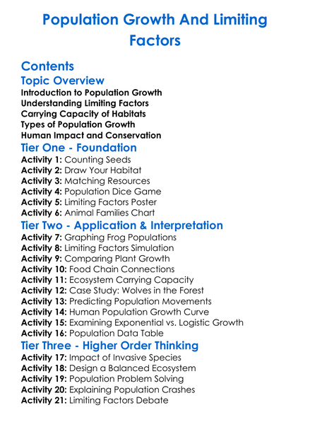 Population Growth And Limiting Factors Worksheet Activity Booklet