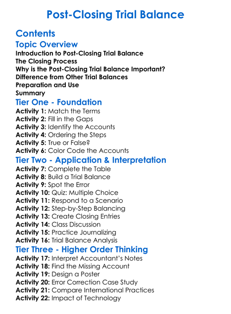 Post-Closing Trial Balance Worksheet Activity Booklet