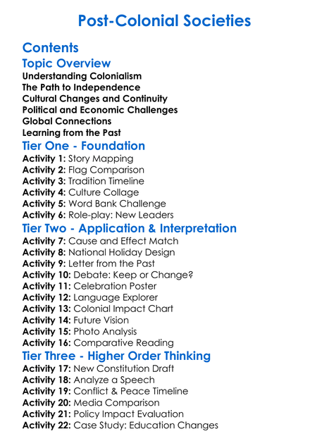 Post-Colonial Societies Worksheet Activity Booklet