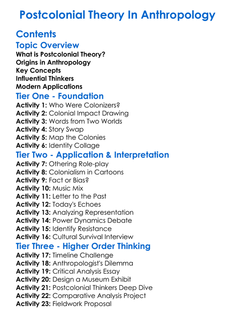 Postcolonial Theory In Anthropology Worksheet Activity Booklet