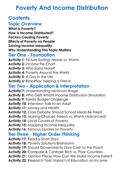 Poverty And Income Distribution Worksheet Activity Booklet