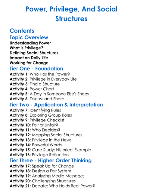 Power Privilege And Social Structures Worksheet Activity Booklet