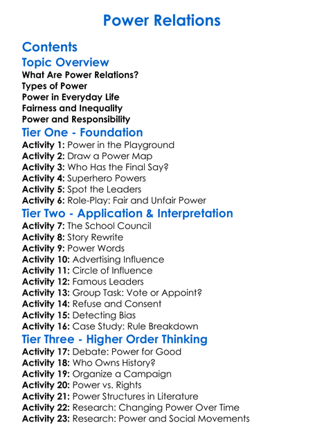 Power Relations Worksheet Activity Booklet