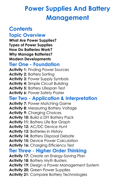 Power Supplies And Battery Management Worksheet Activity Booklet